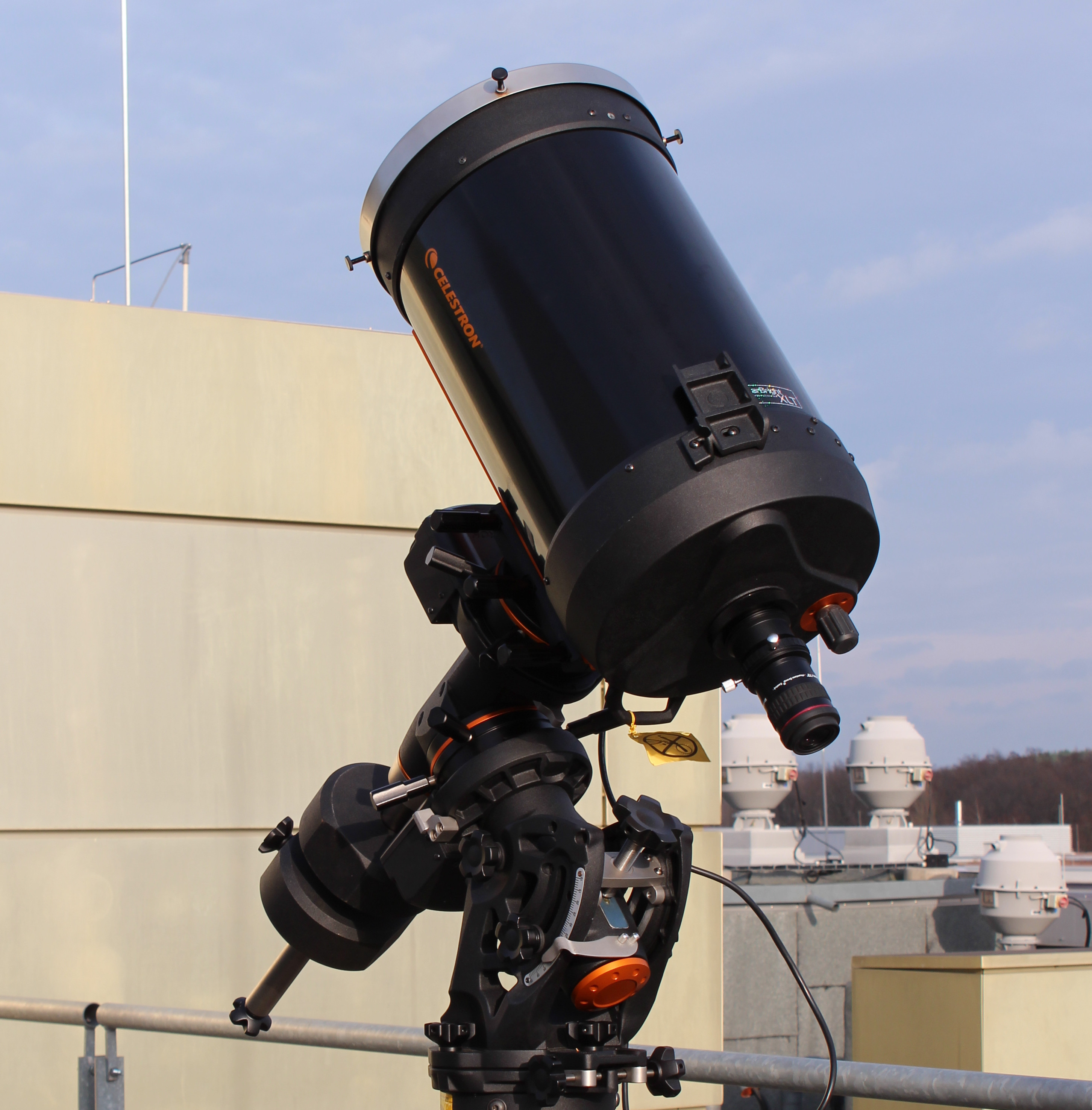 The C14 is our largest Schmidt Cassegrain telescope. It can be mounted on either the CGE-Pro or the CGX-L mount from Celestron. Before we got the CDK-20, the C14 used to be our main fixed telescope. The C14 cannot be used for solar observations. The setup and operation is basically equivalent to the C11. The setup of the CGX-L differs only in a few points from the CGE-Pro. However, the CGX-L is somewhat easier to handle than the CGE-Pro.